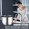 PRACTICAL HANDLE: Featuring an ergonomic handle, this stainless steel draining basket ensures a comfortable grip for easy lifting and emptying. Designed for convenience, it easily hangs in the center of your sink, fitting dividers less than 4cm for quick, tool-free installation.